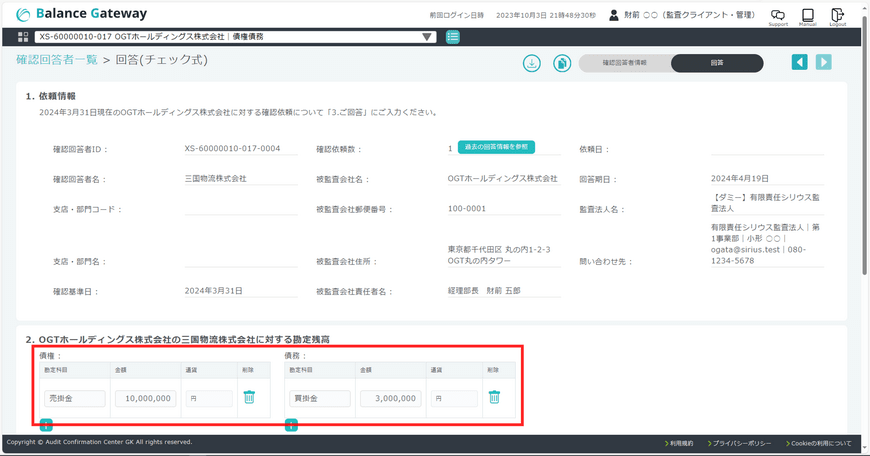 - Balance Gatewayの操作のポイントを絞り画像付きで解説している「クイックリファレンスガイド【被監査会社ユーザー向け】」もご覧ください。