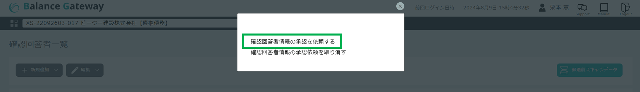 - 【Web】確認回答者情報の承認