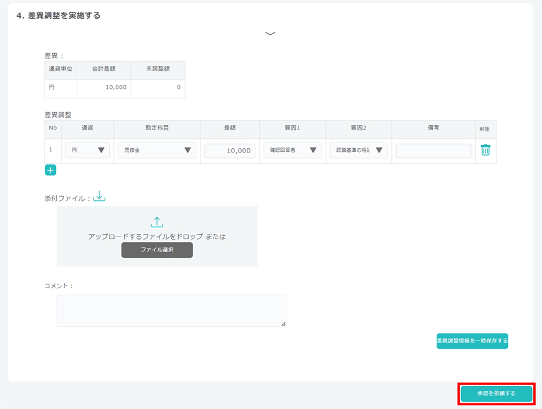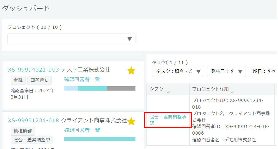 - 【債権債務】差異調整結果の承認