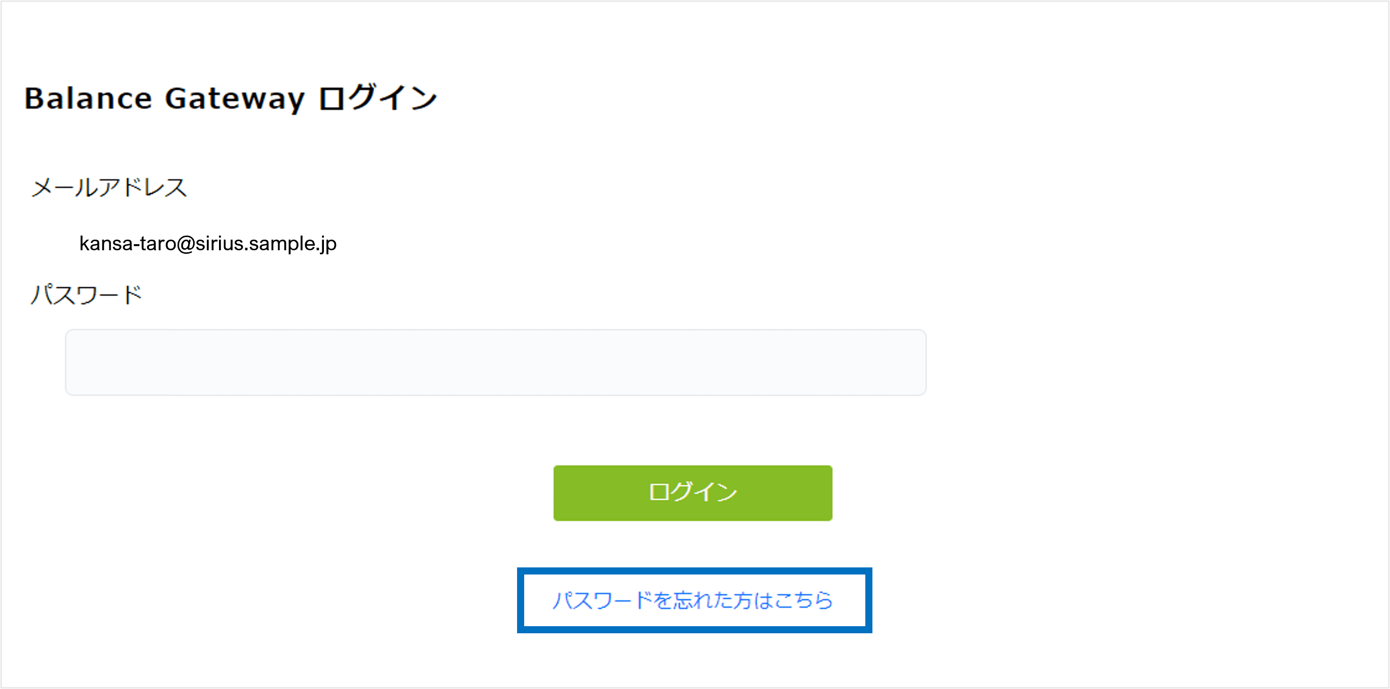 WebブラウザからBalance Gatewayにアクセスし、メールアドレスとパスワードを用いてログインします。