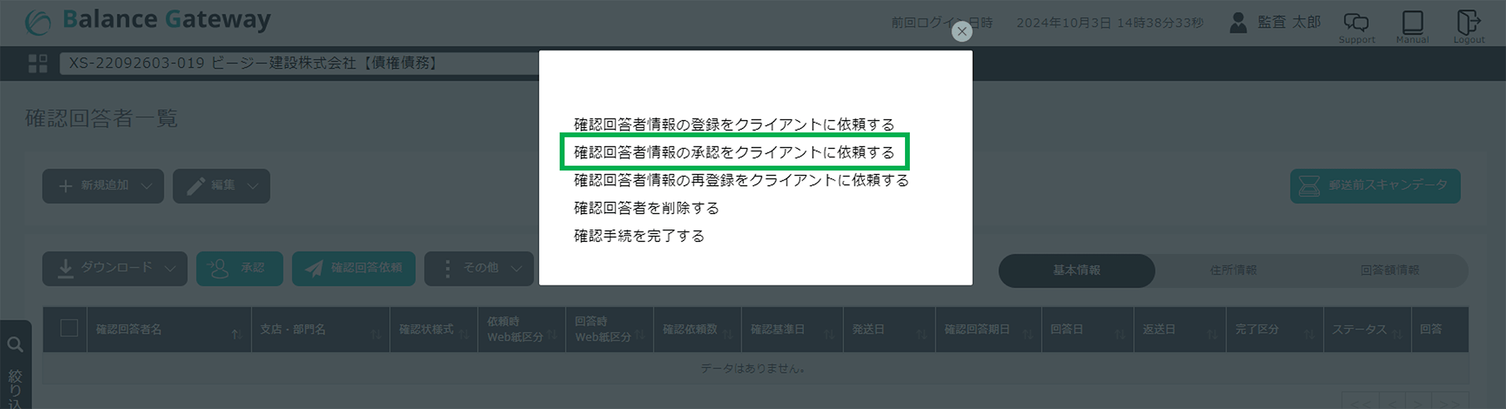 - 【Web】確認回答者情報承認の依頼