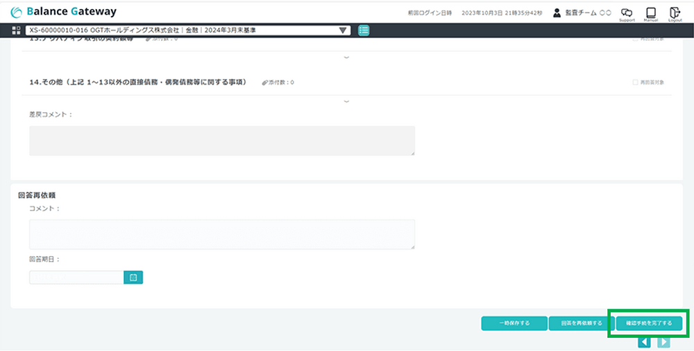 - プロジェクトタイプ「債権・債務」(旧:プロジェクトタイプA)において、残高データの申請・承認機能を廃止し、残高データの登録後に監査人ユーザーが残高データの確定を行うフローに統一しました。
