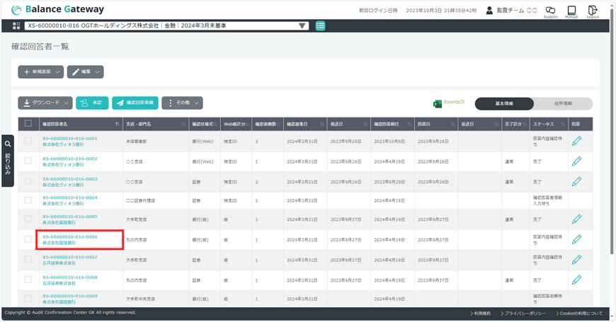 - Balance Gatewayの操作のポイントを絞り画像付きで解説している「クイックリファレンスガイド【監査チームユーザー向け】」もご覧ください。
