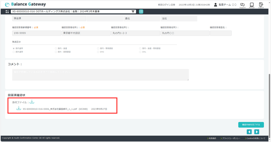 銀行確認状利用時にBalance Gatewayから出力される確認状PDFに、確認状の本紙が含まれるようになりました。