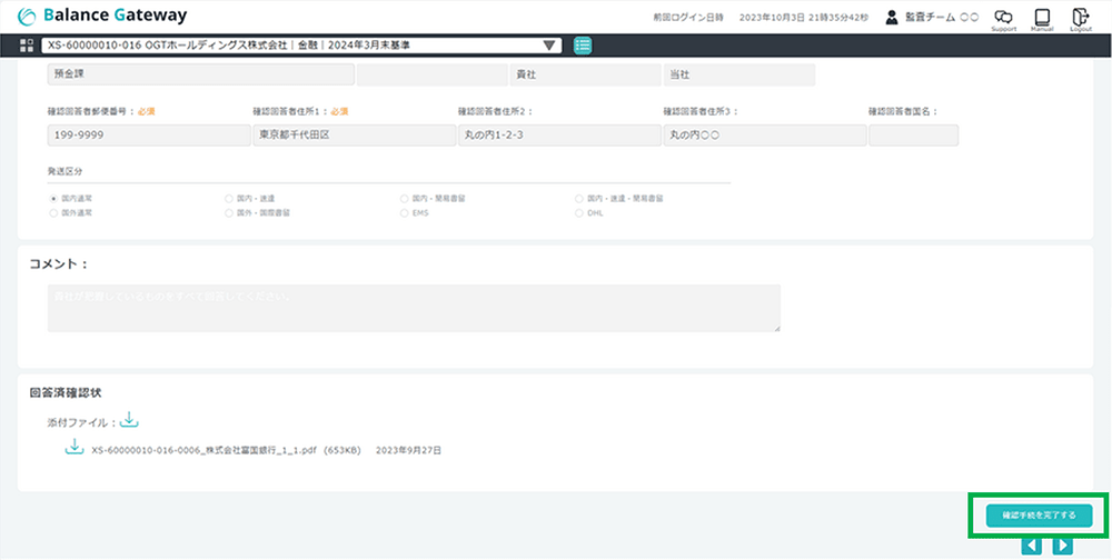- 【紙面・債権債務・その他】郵送前確認と確認回答依頼