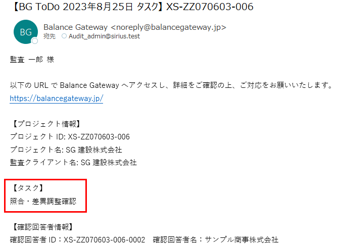 - 被監査会社宛通知メール