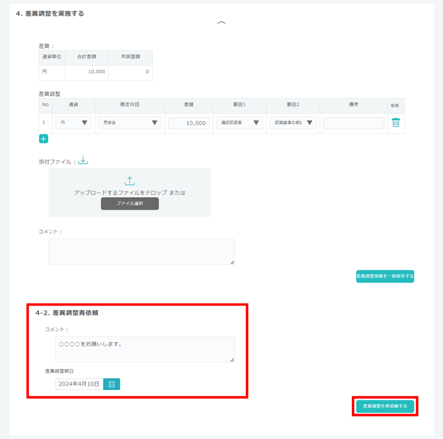 - 【債権債務】差異調整結果の確認・再依頼