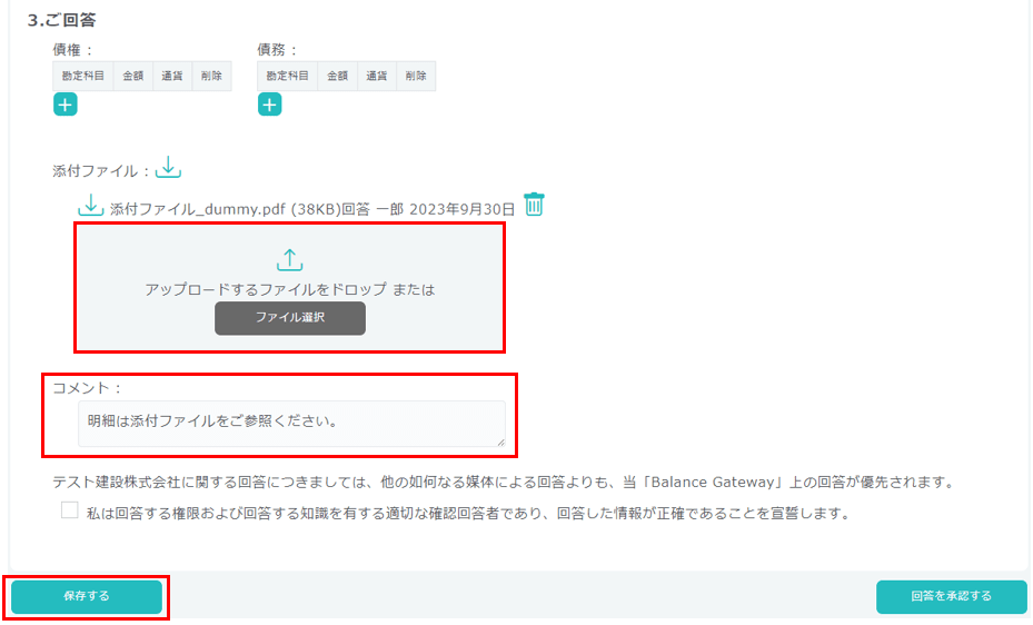 - 回答(回答種類 – 債権・債務、添付参照式)