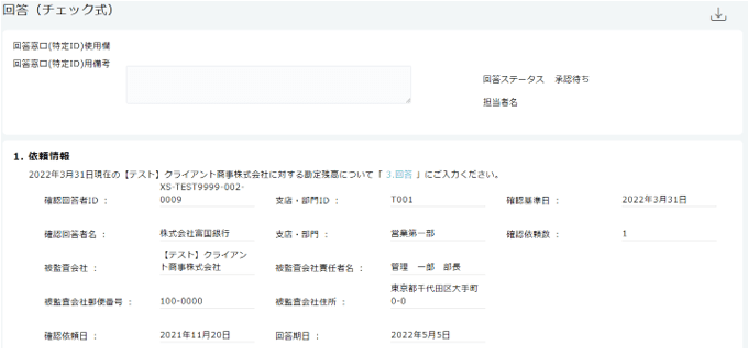 - 銀行等取引残高確認の一括回答機能における回答に対する再回答依頼において、既存回答ファイルのアップロード者氏名が別名に置き換わる不具合を修正しました。