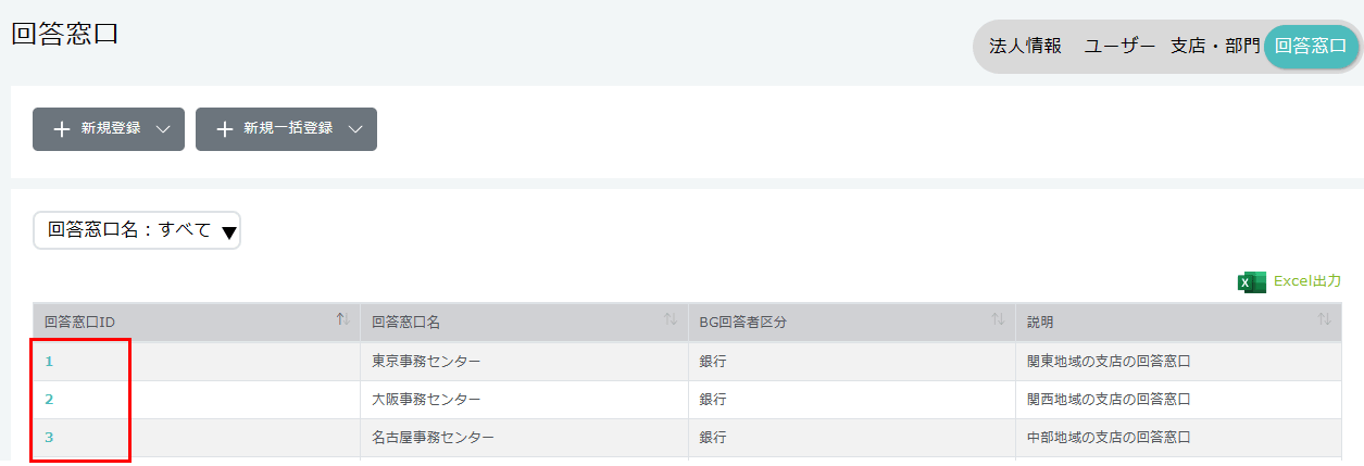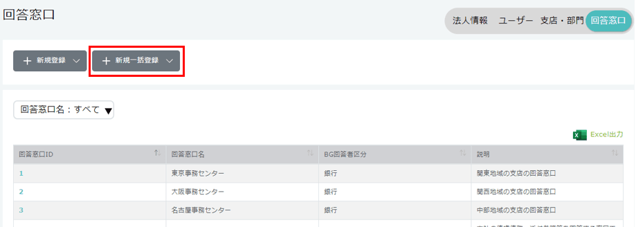 法人ユーザーの登録と編集、回答窓口への紐づけ