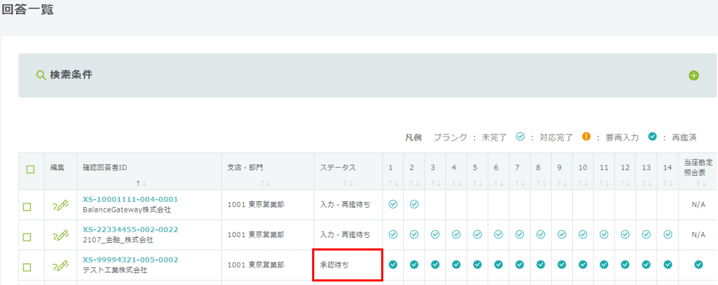 ステータスが「回答済」「完了」「強制完了」の依頼を除外し、回答一覧画面には回答前の依頼が初期表示されるようになりました。