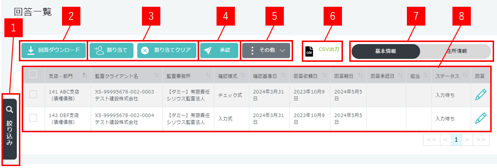 銀行取引残高確認以外の回答一覧画面では、検索条件に「支店・部門」を追加し、各「支店・部門」宛の依頼を絞り込みやすくなりました。