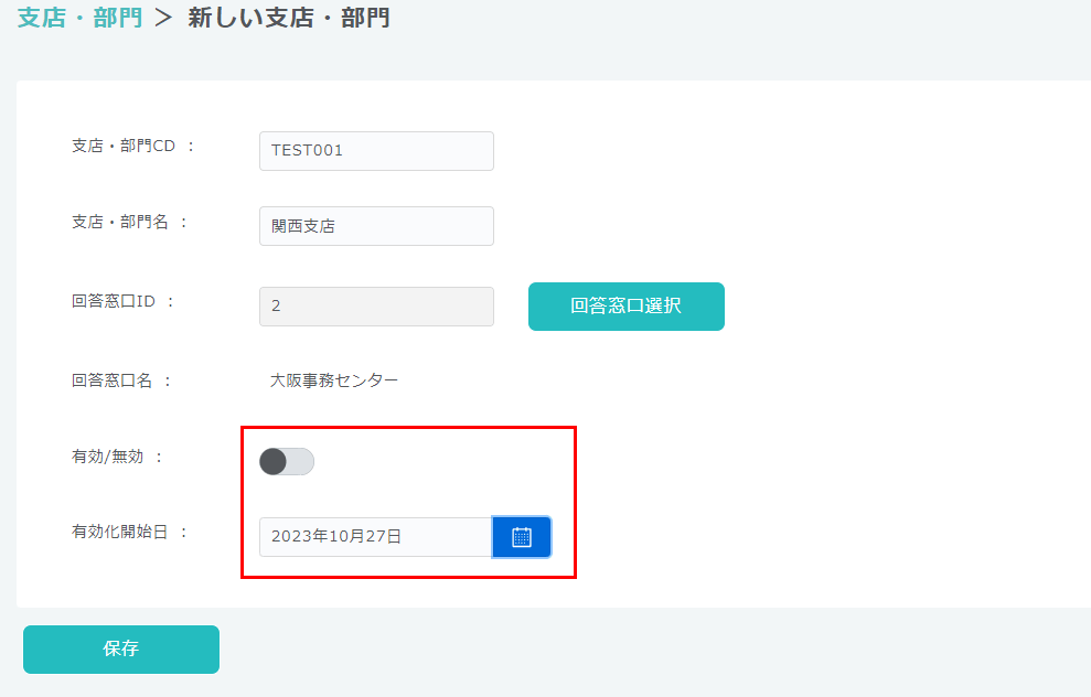 支店・部門の一時的な無効化や、日付を設定して支店・部門を有効化することも可能です。