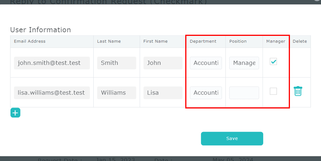 In this system, there are two roles (privileges) for each of the manager, and general user to carry out a confirmation response. The roles are as follows: