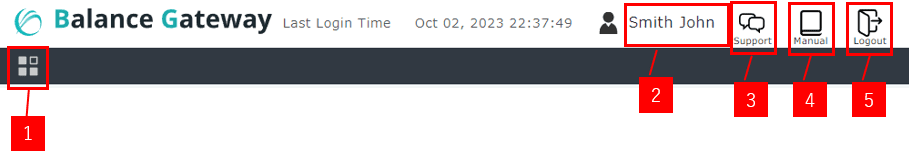 | 5 | Exit door icon button (Logout) | Click to log out of Balance Gateway. |