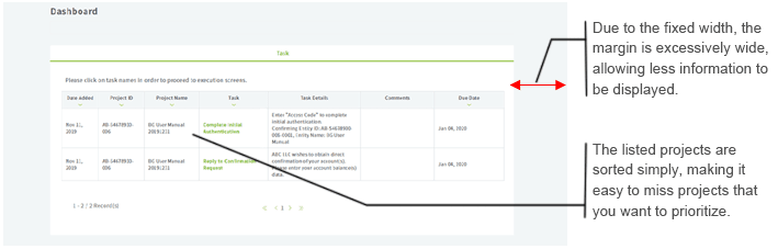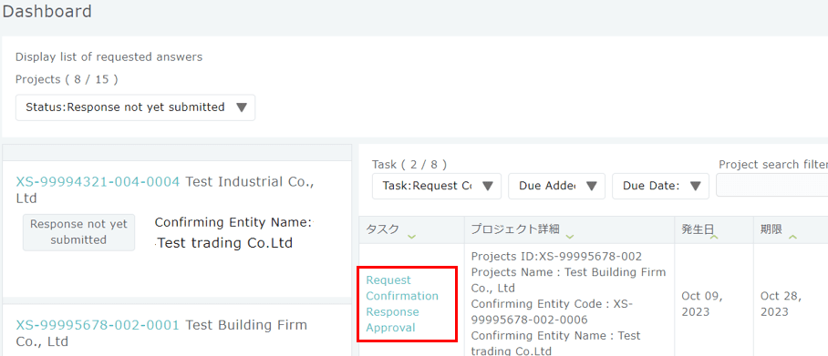 | 3 | Project information | Displays the confirmation responder ID (confirmation letter) in charge. Those with no tasks currently are also displayed. |