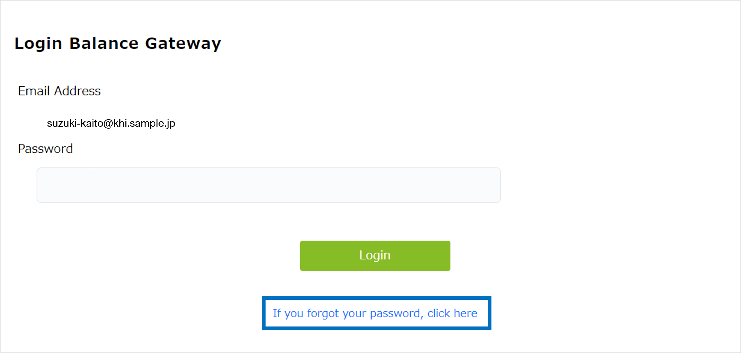 Users whose last login to Balance Gateway occurred after June 2024 and for whom the audit team’s verification process has not yet been completed will receive an e-mail from Balance Gateway (sender: noreply@balancegateway.jp) to reset their password (subject: 'Notice of Balance Gateway Temporary Password') on Saturday, August 31, 2024. Please change the temporary password provided in the e-mail to your own password.