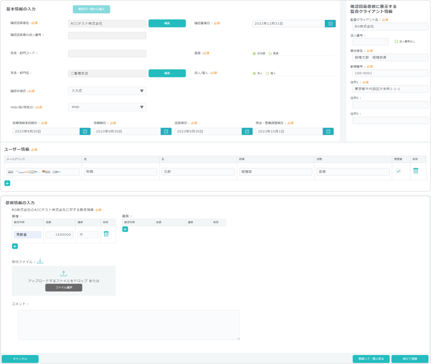 1. 依頼情報を登録 <被監査会社または監査法人等>