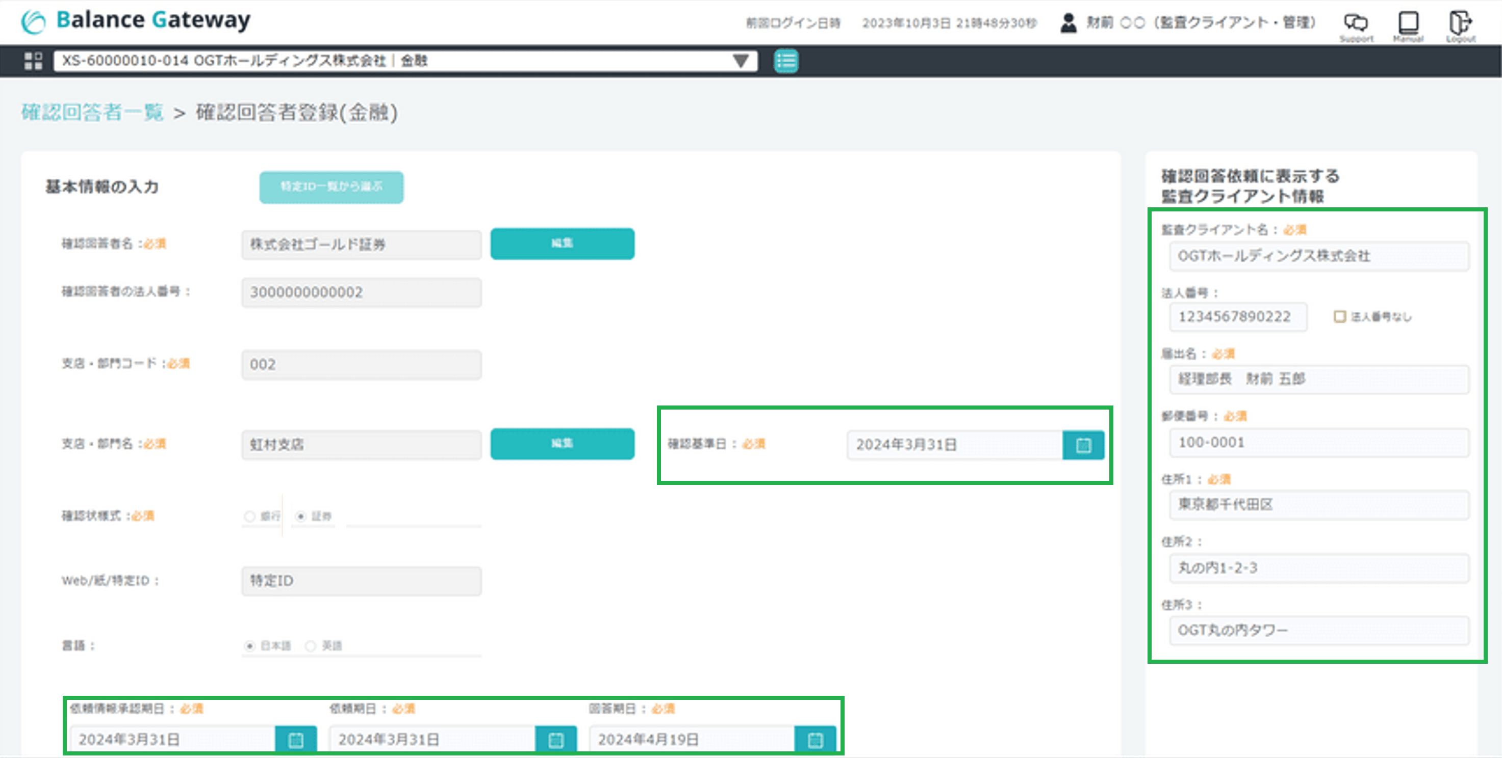 被監査会社ユーザーによる確認回答者の新規登録機能の追加