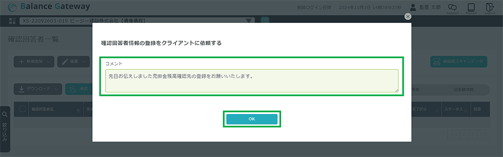 被監査会社のユーザーも確認回答者の新規登録を行えるようになりました。