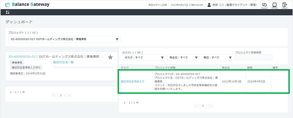 - プロジェクトタイプ「債権・債務」(旧:プロジェクトタイプA)チェック式の監査クライアント備考の反映(紙面確認)