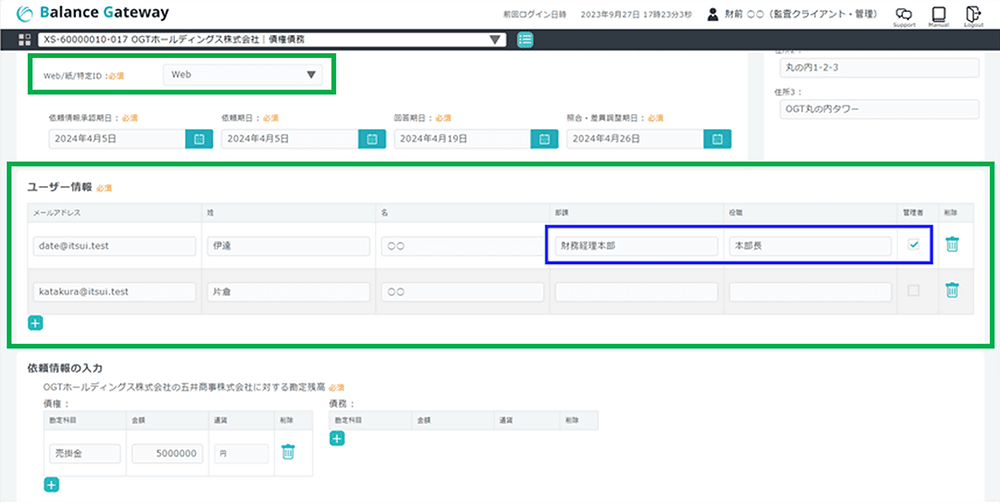 Balance Gateway上で監査人ユーザーおよび被監査会社ユーザーを一括で追加・編集する機能を追加しました。