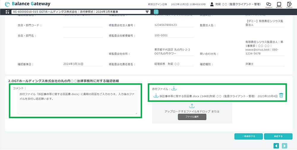 プロジェクトタイプ「債権・債務」(旧:プロジェクトタイプA)チェック式の監査クライアント備考の反映(紙面確認)