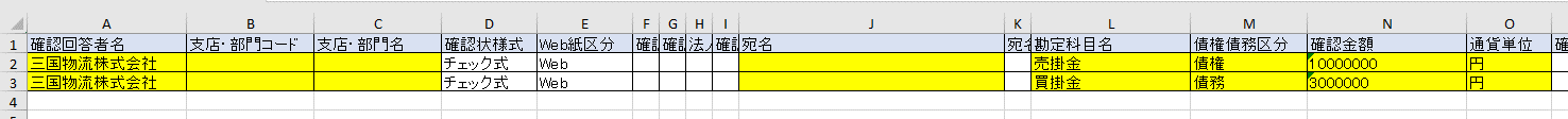 プロジェクトタイプ「債権・債務」(旧:プロジェクトタイプA)の各アップロード用テンプレートExcelファイルの項目変更