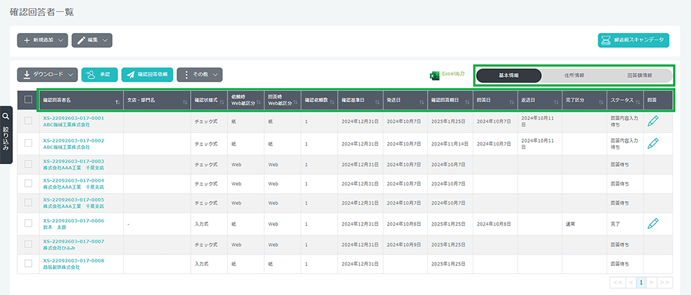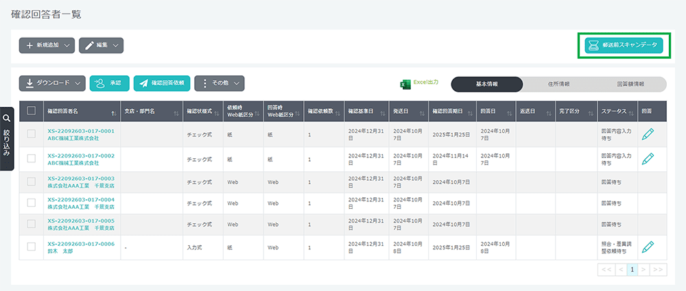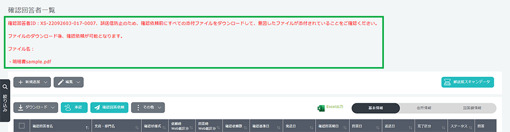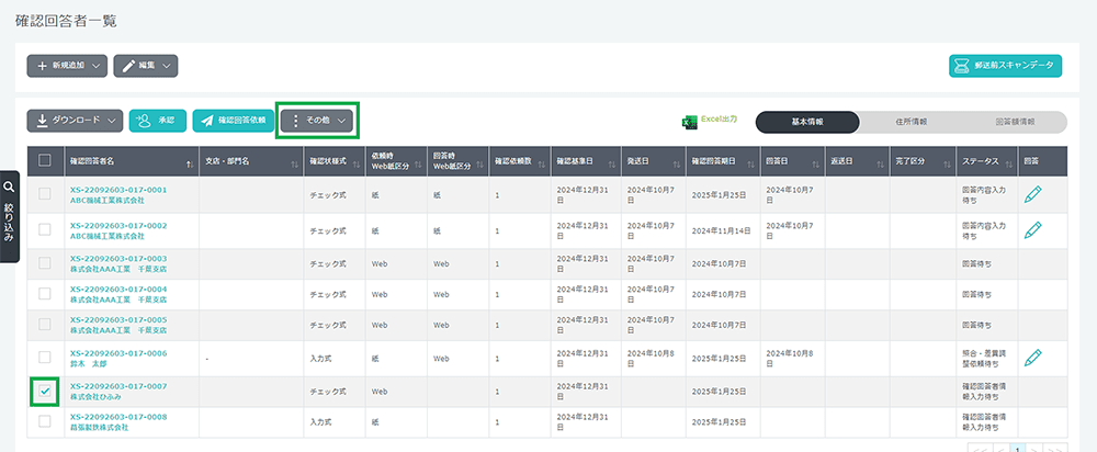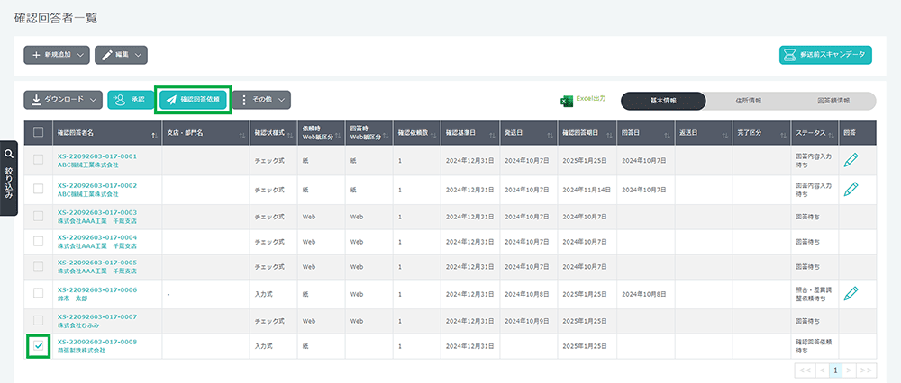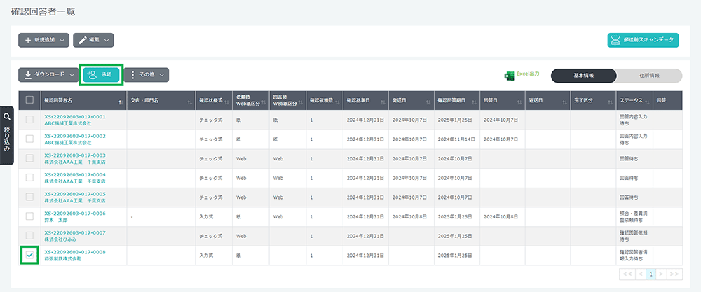 [確認回答者一覧]画面に確認回答者情報の承認依頼ボタンを追加しました。