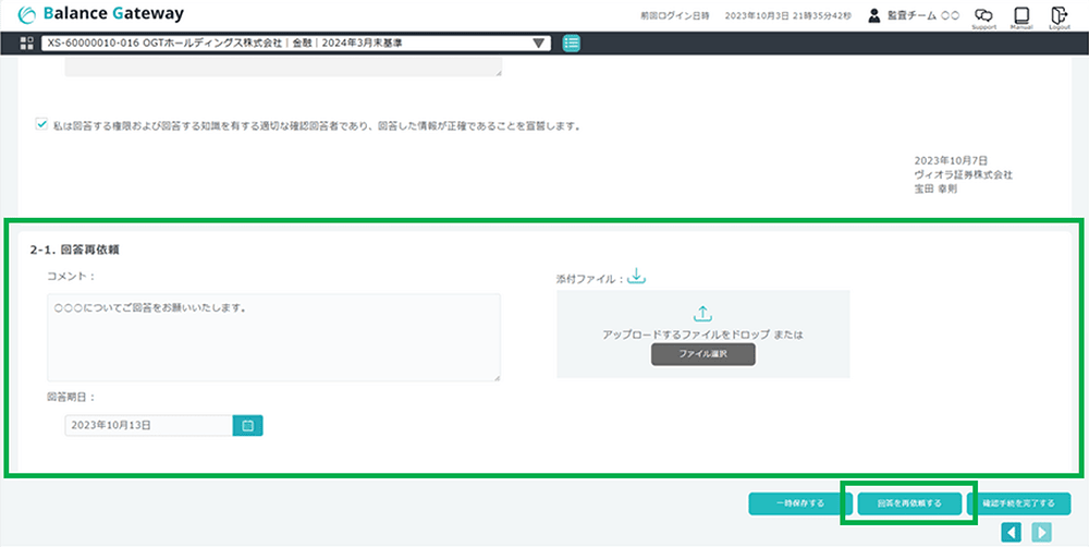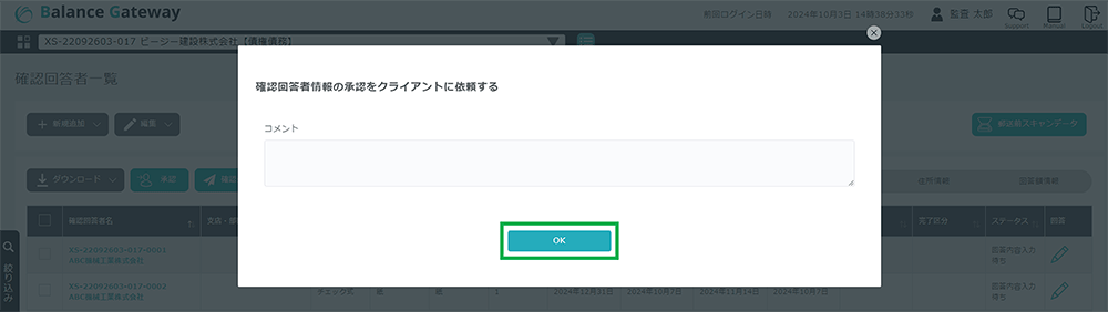 被監査会社ユーザーによる確認回答者の新規登録機能の追加