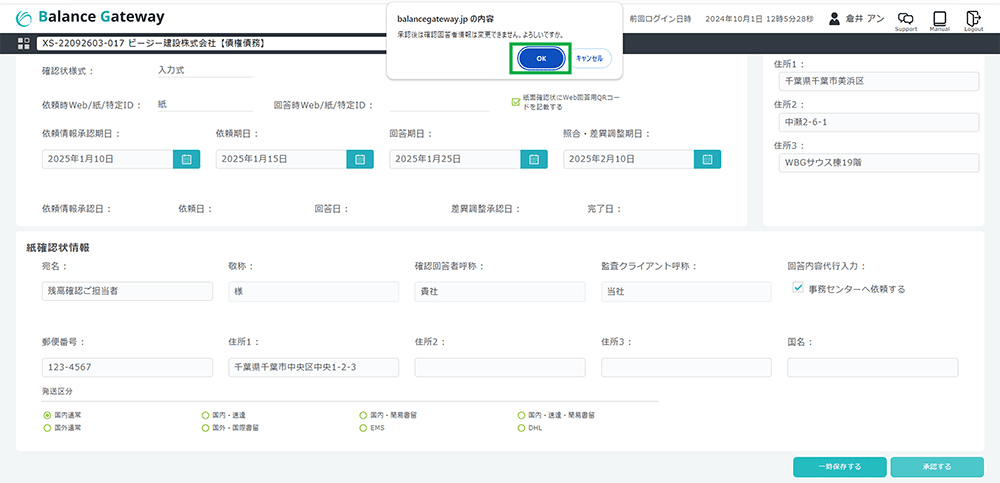 - 【紙面・債権債務・その他】郵送前確認と確認回答依頼
