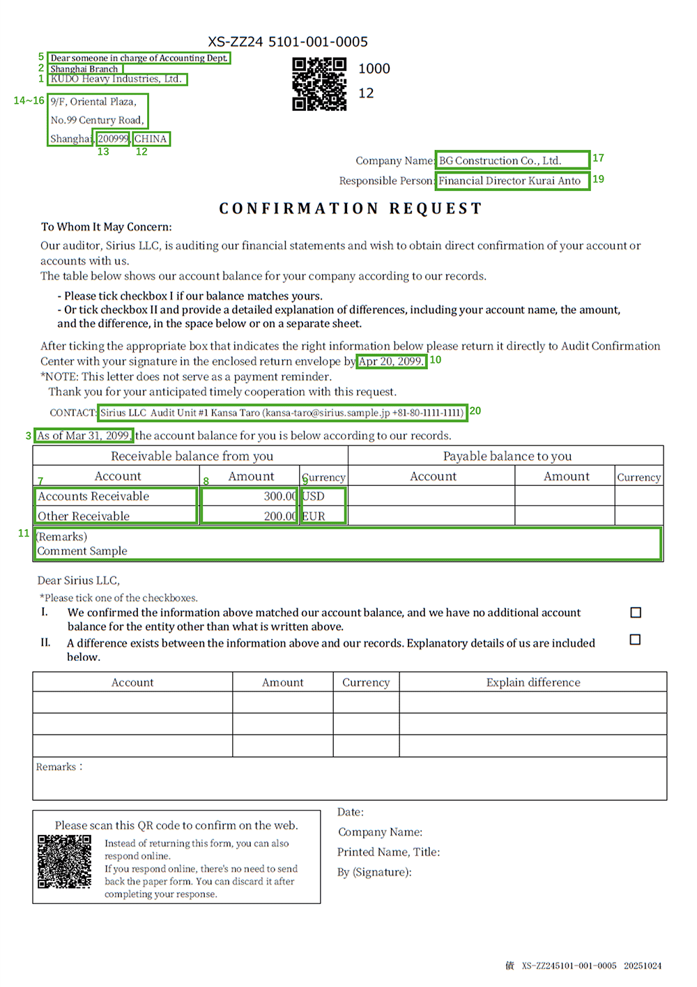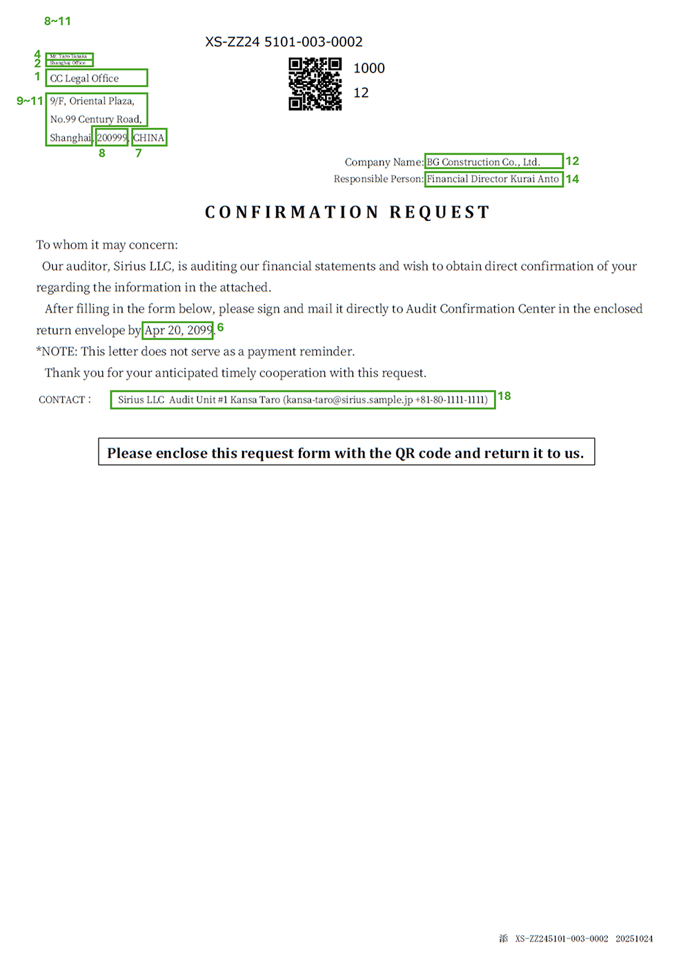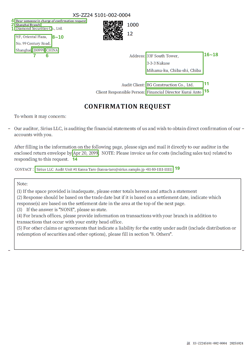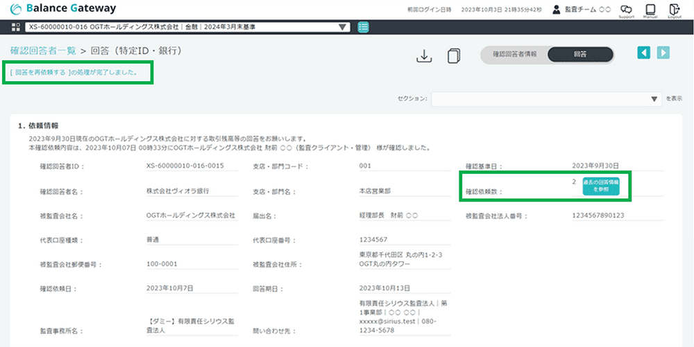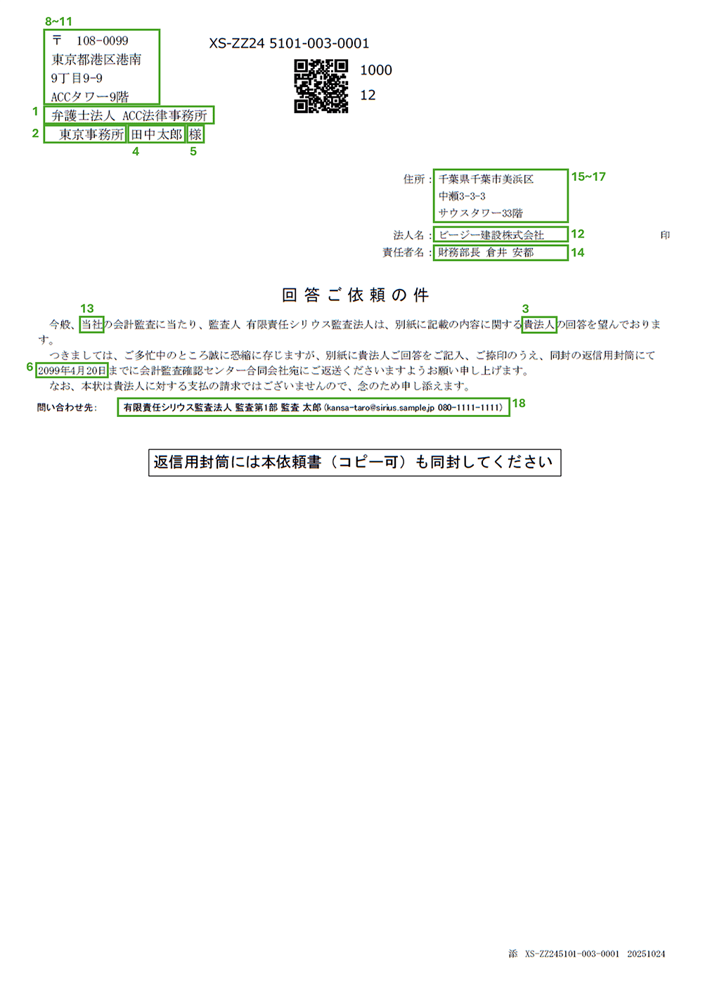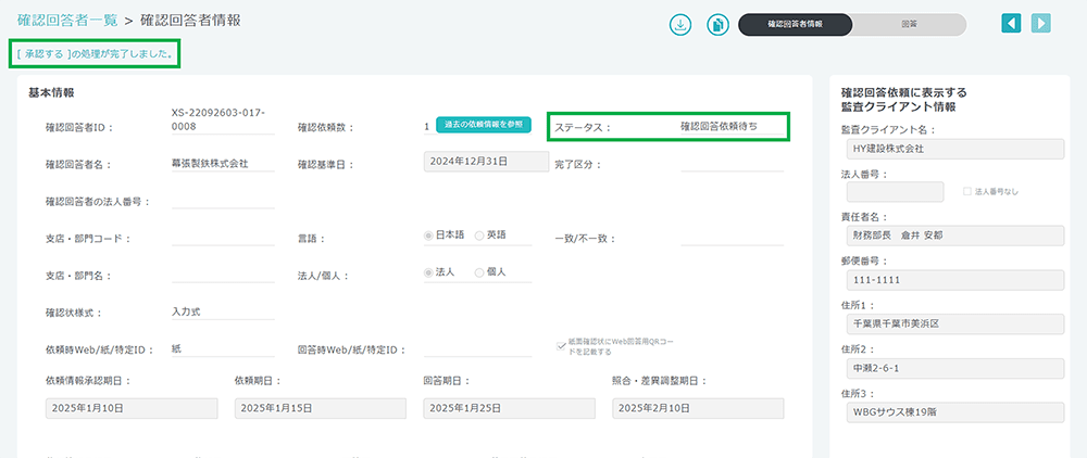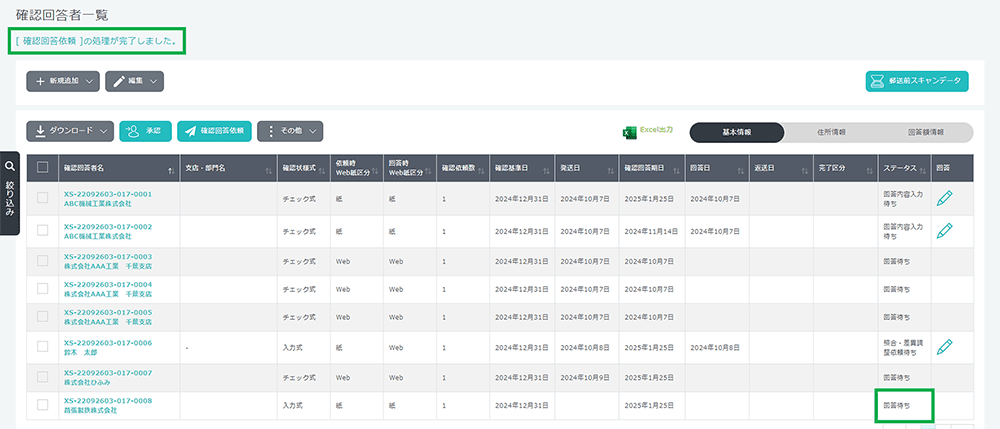 - Web確認を行う際に送付される確認依頼書について、確認回答者の法人/個人区分が個人の場合に、個人情報の取り扱いのメッセージが出力されるようになりました。