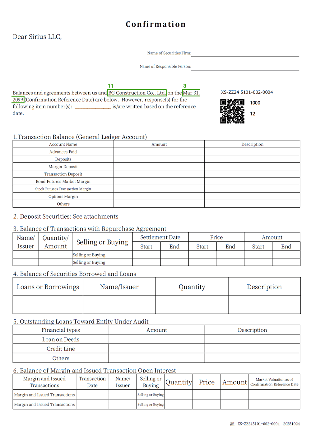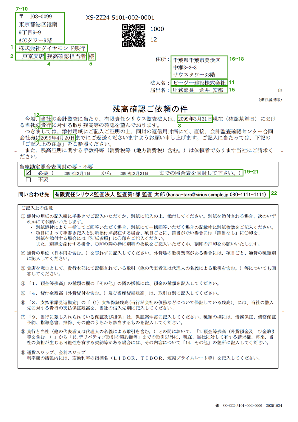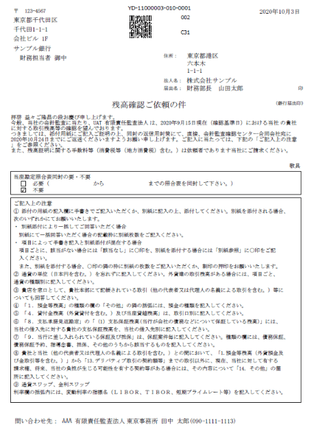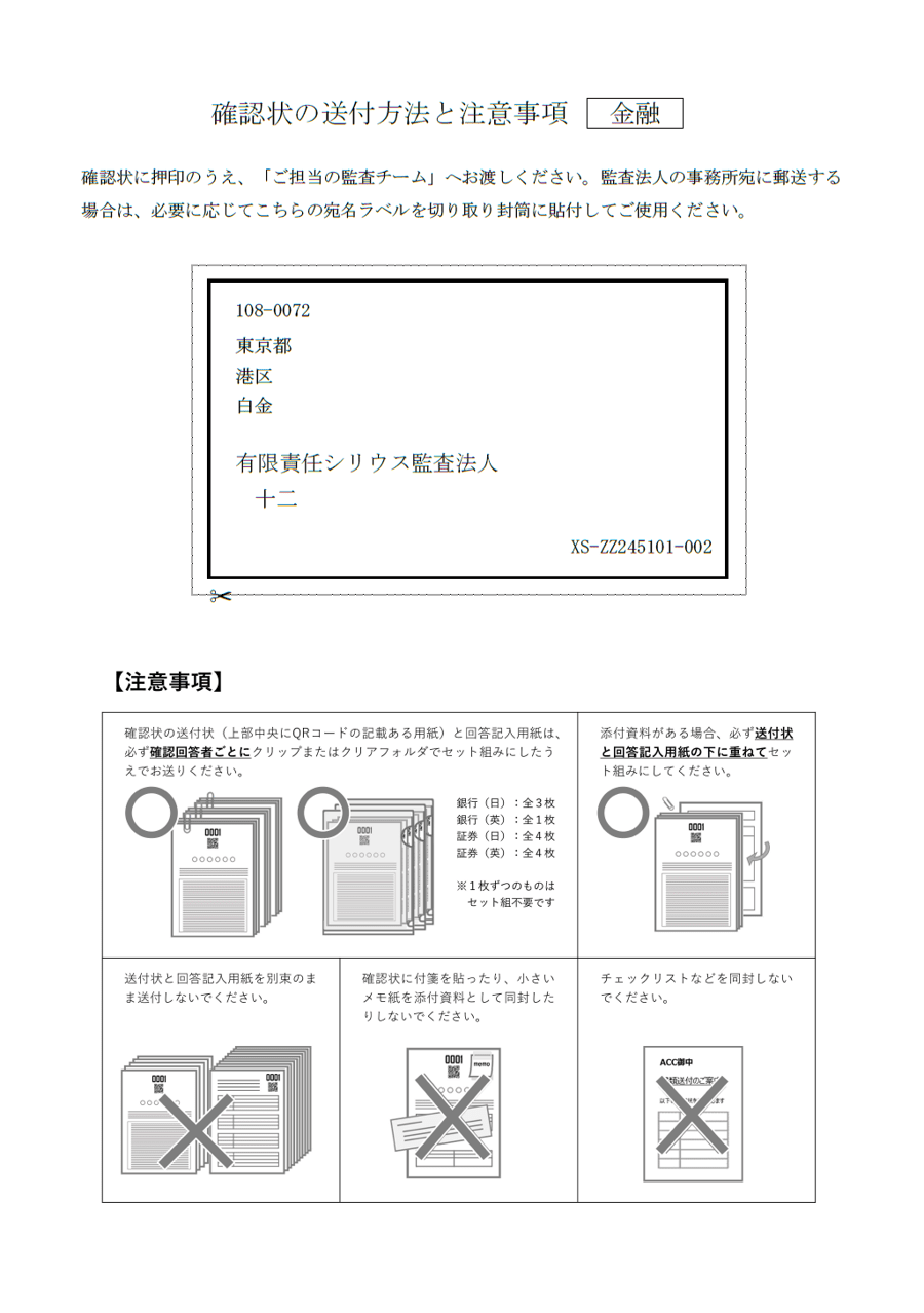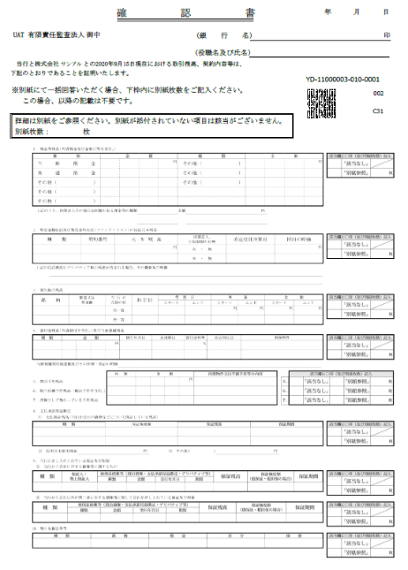 - 【紙面】銀行等取引残高確認・証券取引残高確認・その他の確認