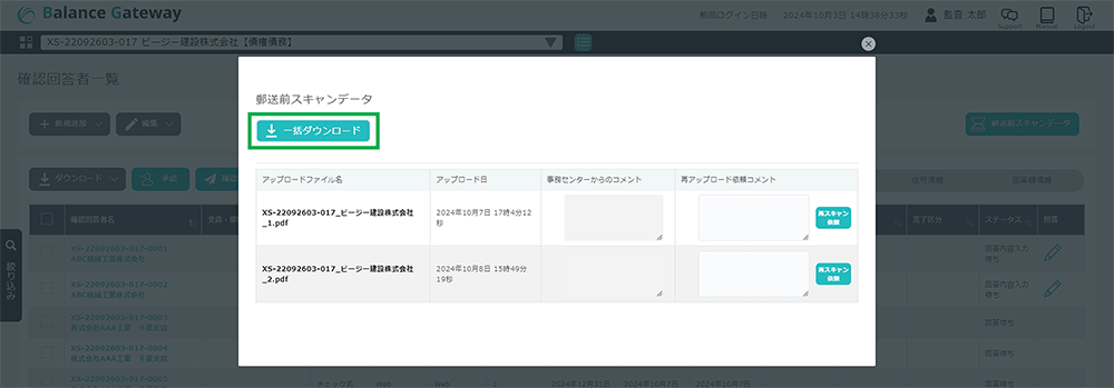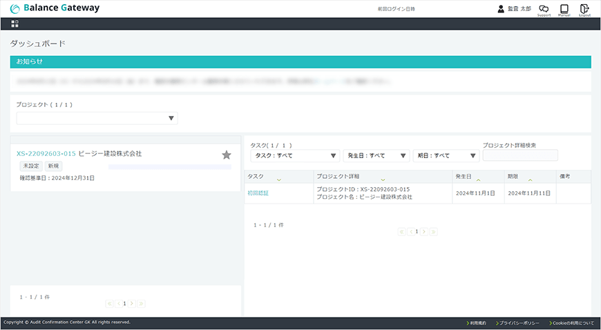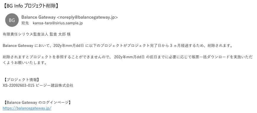 バージョンアップ前は定期的にデータの削除を実施しておりましたが、セキュリティの観点からプロジェクト完了の3か月後にBalance Gateway上のデータを削除する機能を追加しました。データが削除されると帳票のダウンロードを行えなくなるため、プロジェクト完了前に帳票をダウンロードしてください。