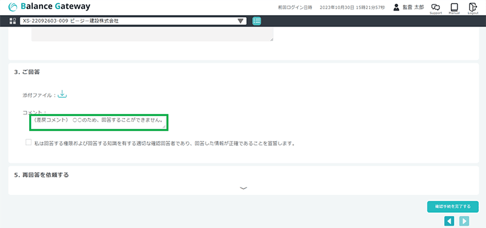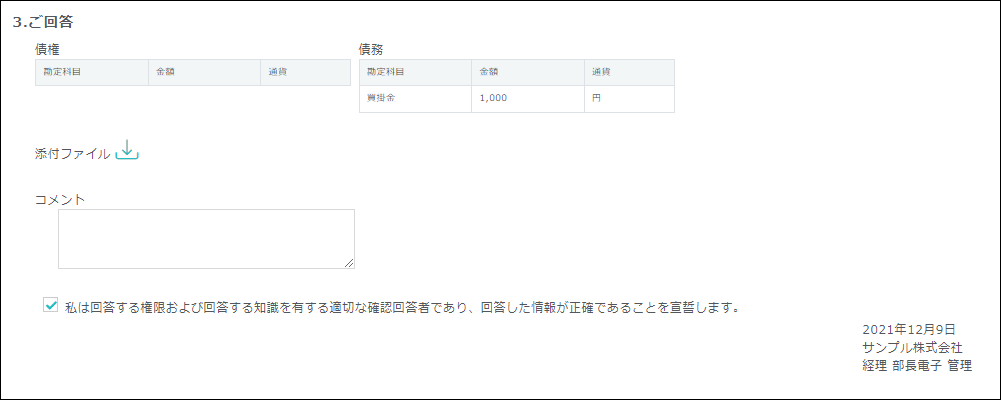 - Web確認の回答画面において、適切な回答者である旨の宣誓を行うチェックボックスの位置を変更しました。