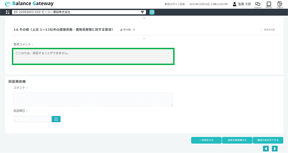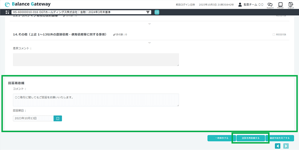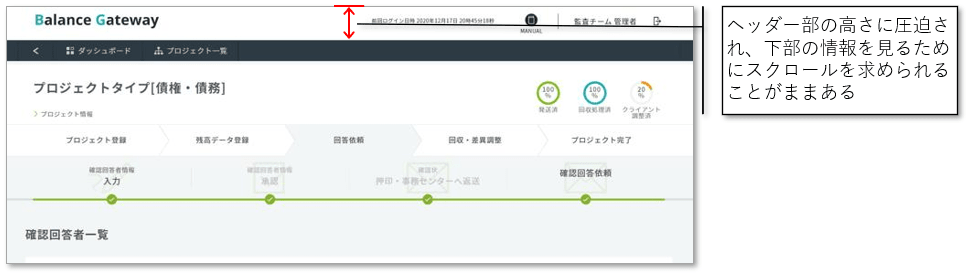 - プロジェクトタイプ「その他」(旧:プロジェクトタイプB)の[確認回答者一覧]画面において、[差異調整依頼]ボタンを削除しました。