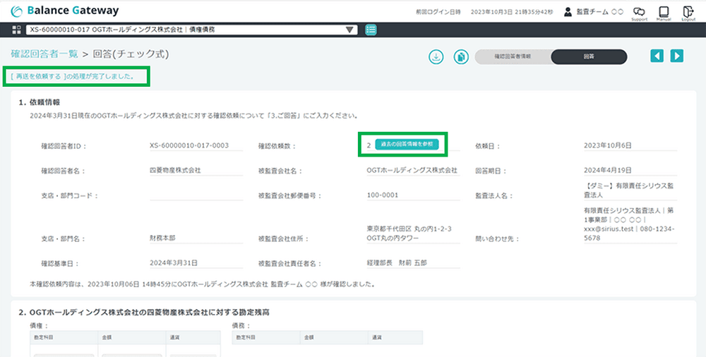 - プロジェクトタイプ「債権・債務」(旧:プロジェクトタイプA)の確認回答者情報追加方法の変更