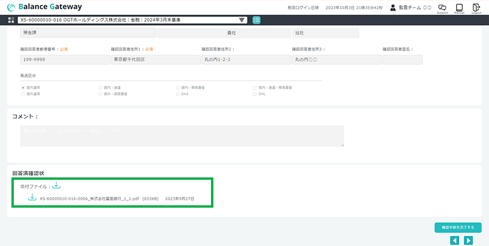 銀行確認状利用時にBalance Gatewayから出力される確認状PDFに、確認状の本紙が含まれるようになりました。