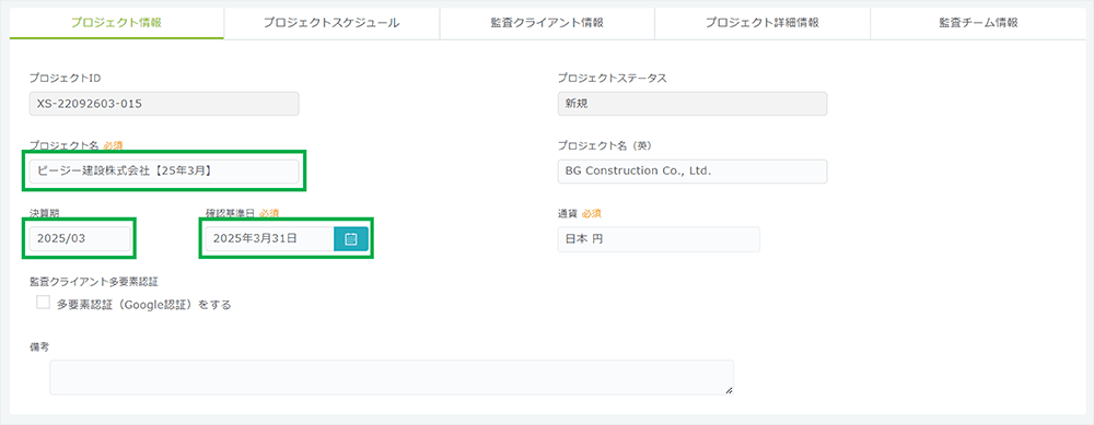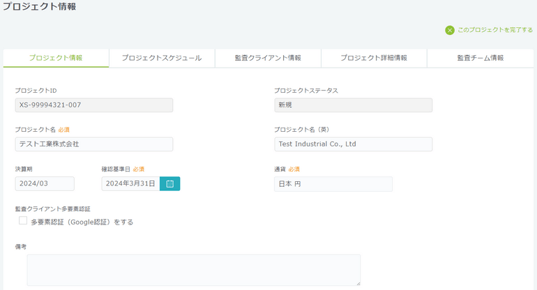 - プロジェクト情報の監査クライアント情報タブに[法人番号]欄を追加しました。監査クライアントの法人番号を入力する欄です。こちらは今後の実装予定の追加機能を利用する際の項目となります。