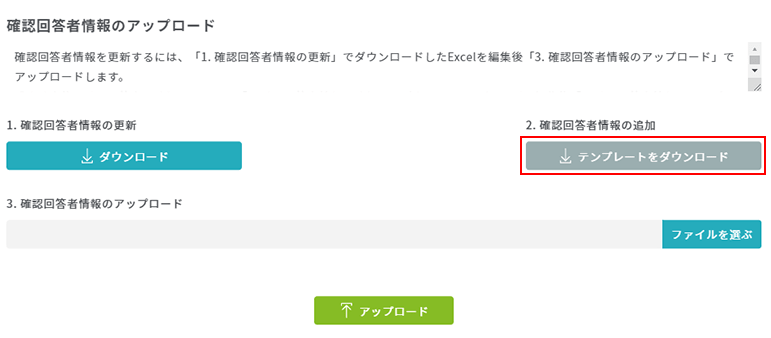 バージョンアップ前は監査人のみ確認回答者情報を登録できましたが、バージョンアップにより被監査会社ユーザーの[確認回答者情報のアップロード]ダイアログにも[確認回答者情報の追加]ボタンが追加されており、被監査会社のユーザーも確認回答者の新規登録を行うことが可能です。