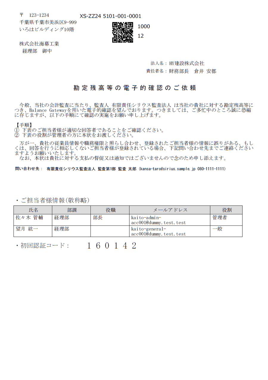 Web確認時に、確認回答者が初回認証を行う際に必要な確認コードを確認回答者の管理者へメールする方法に変更し、従来、紙面で発送していた確認依頼書は廃止しました。